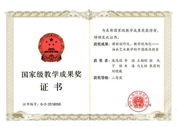 经国家级教学成果奖评审委员会评审确定,依据国务院公布的《教学成果奖励条例》规定,报经国务院批准,四川美术学院造型艺术学院油画系申报的《课程创作化、教学现场化——油画艺术教学的中国路径探索》获得2018年高等教育国家级教学成果奖二等奖。此次教学成果申报,是油画系全体教师团队在教育教学岗位上,经过长期不懈的努力获得的佳绩,充分展现了油画系一直以来通过重视教学建设、教学改革、人才培养等工作在教育教学理论及实践中取得的重大突破。油画系全体教职工将珍惜荣誉,再接再厉,再创佳绩。