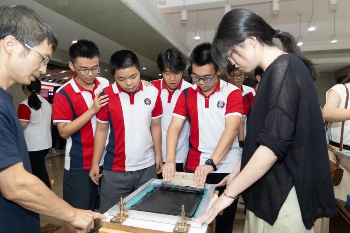 我校师生团队负责了展陈设计制作;我校教师金川带领师生对《新华日报》部分黑白木刻版画进行了复刻工作,并在现场与师生们进行了交流互动。