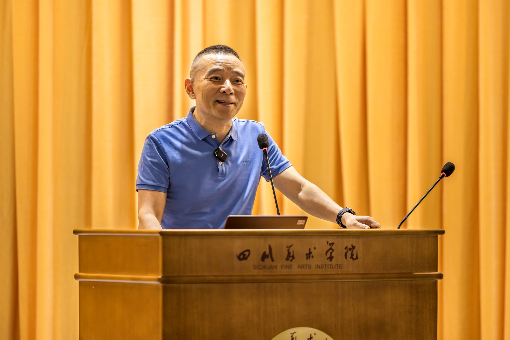焦兴涛聚焦“问题与对手”,从5岁时一幅汽车画切入,以个人经历为脉络,分享了他从艺术学习到创作实践的心路历程。他表示,艺术启蒙源于内心对艺术的本能向往与投入。他强调,艺术学习需要突破惯例,研究生阶段更要重点培养“提出问题”的意识与建立个人学术体系的能力。他还分享了跨文化实践经历,提及其在俄罗斯、美国、威尼斯等地的驻留与展览经历,促使他重新思考艺术与社会、生活的关系;通过“羊磴艺术合作社”实践案例的介绍,阐释艺术与日常生活无缝衔接的探索。