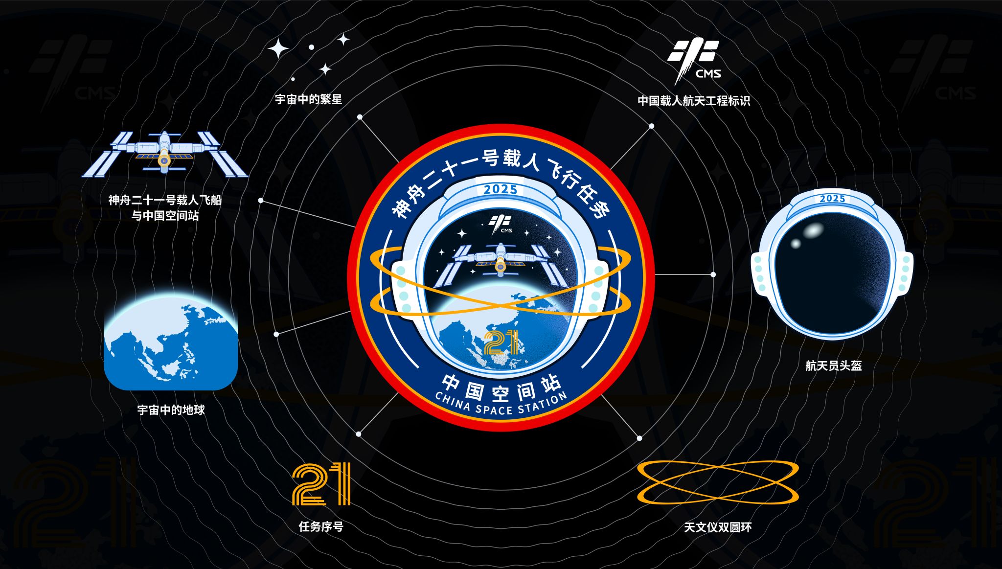 神舟二十一号载人飞行任务标识的头盔为球形设计,在顶部镌刻“2025”,彰显任务年份。面窗上半部分,神舟二十一号与空间站于星光中成功对接,组合体下方映照祖国大地,寓意家国情怀。环绕头盔的两圆环,既似古代天文仪,又象征宇宙星体,传递中国人探索宇宙的永恒追求。标识简洁而富有深意,融合现代科技与传统文化,展现中国航天人的勇气与决心,以及对宇宙无限奥秘的永恒探索精神。