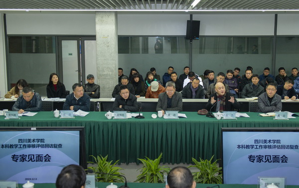 校长庞茂琨代表学校作本科教学工作审核评估整改工作情况汇报。他从整改工作整体情况、改进举措、整改成效、未来展望四个方面进行介绍,着重围绕专家组评估反馈的体制机制、师资队伍、教学资源、国际交流、质量保障等五个方面的问题,详列了学校一年来评估整改的有效手段和重点措施。他说,一年来学校高度重视审核评估整改工作,从学校发展全局的战略高度统筹规划,搞好顶层设计,针对问题逐条整改,注重重点整改与全面建设,既完善提高,又强化特色,整改工作组织有序,推进有力,成效明显。通过评估整改,学校教育教学改革各领域成绩突出,标志性创作科研成果不断涌现,人才培养质量持续提升,师资队伍结构持续优化,教学资源条件明显改善。庞茂琨表示,学校将以本次评估整改为契机,不断推动学校内涵建设与特色发展,朝着建设“国内一流、国际知名”美术学院的办学目标不断奋进。