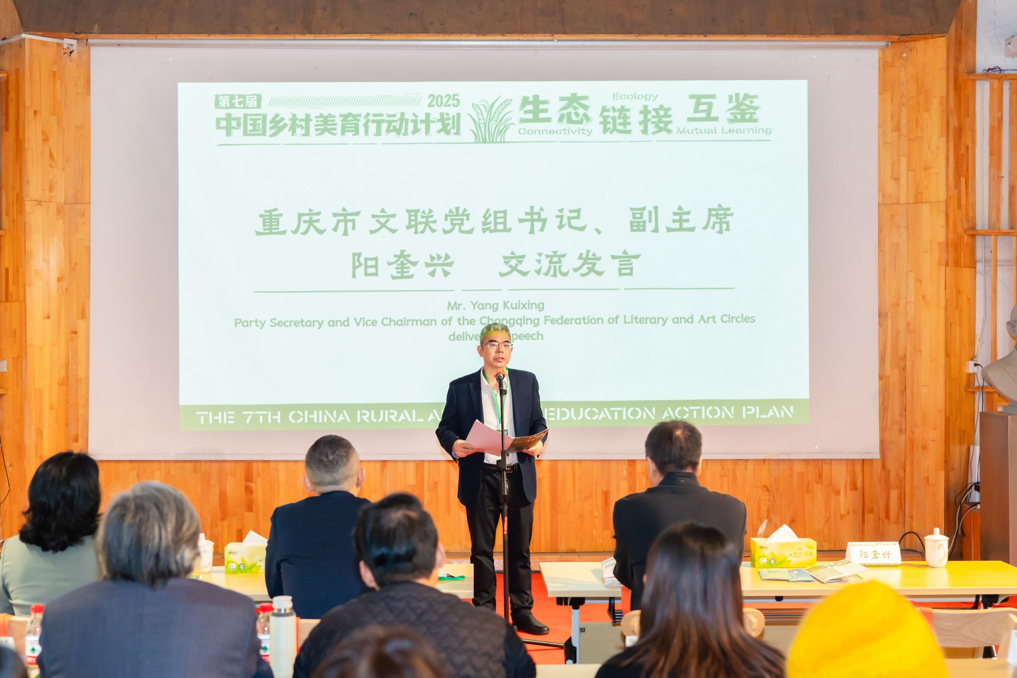 11月2日,由四川美术学院联合重庆市北碚区人民政府、重庆市文联、重庆市美协等单位共同主办的“生态·链接·互鉴:第七届中国乡村美育行动计划”在重庆市北碚区柳荫艺库正式启动。来自全国各地的艺术教育专家、艺术家、社会组织、媒体及村民代表齐聚现场,共同见证这场艺术赋能乡村、美育融入生活的实践成果。