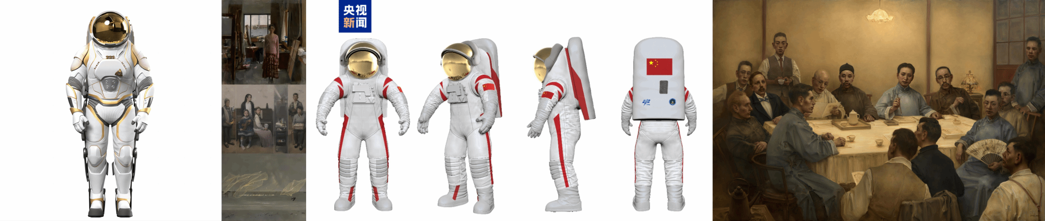 (全国美展一金三银、登月服、中国共产党成立100周年大型美术创作工程作品图拼图)