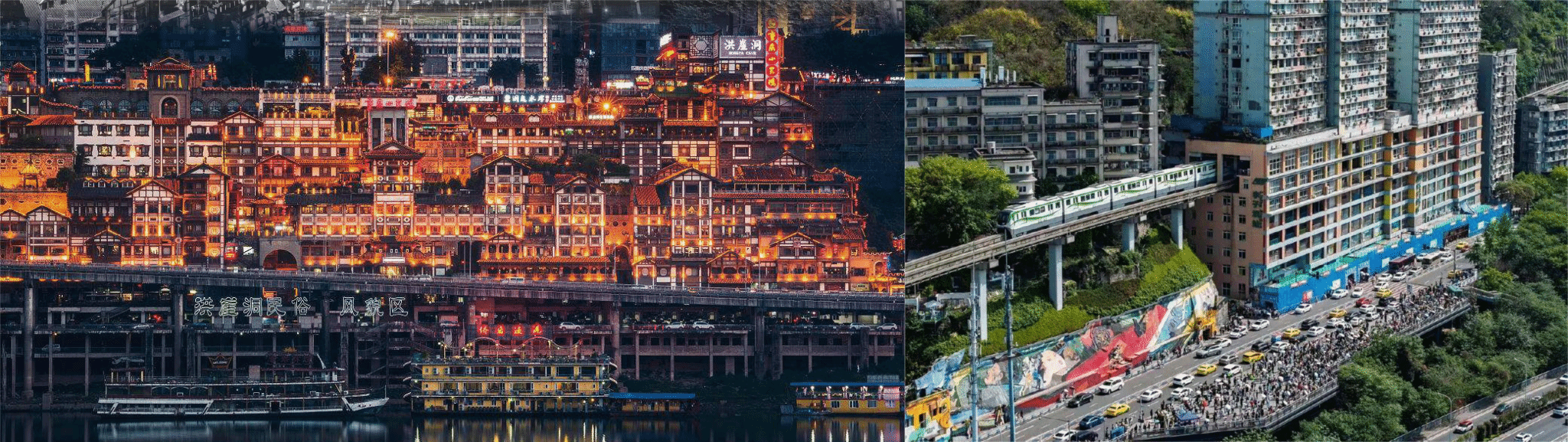 (川美主持设计的洪崖洞和李子坝轻轨穿楼)