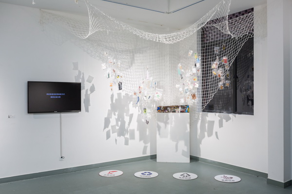 第二单元“绿色回环”展出了由四川美术学院艺术教育学院公共艺术教育专业2016级学生创作的五组围绕“垃圾分类、资源循环”主题创作的作品。