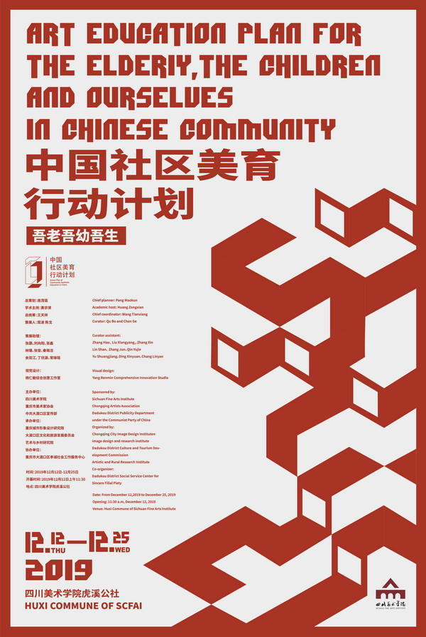 12月12日上午,由四川美术学院、重庆市美术家协会、 中共大渡口区宣传部主办,重庆城市形象设计研究院、大渡口区文化和旅游发展委员会、四川美术学院艺术与乡村研究院承办,重庆市大渡口区孝诚社会工作服务中心协办的“吾老吾幼吾生:中国社区美育行动计划”成果展,在我校虎溪校区虎溪公社正式开展。本次展览由我校庞茂琨校长担任总策划,艺术人文学院院长黄宗贤担任学术主持,造型艺术学院党总支书记王天祥担任总统筹,教授屈波、青年教师陈戈担任策展人。