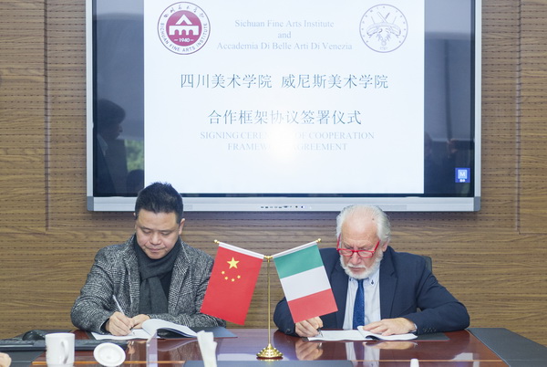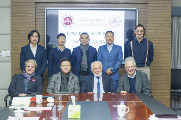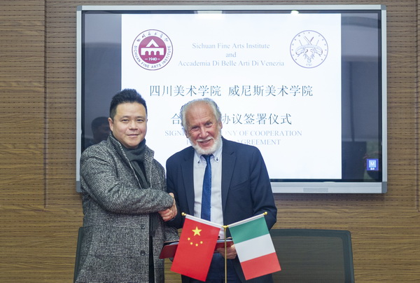 中意艺术教育创新培养研讨会于2019年12月12日在重庆召开,众多意大利知名美术院校齐聚我校,共同探讨艺术教育创新培养。12月13日,四川美术学院与威尼斯美术学院合作框架协议签约仪式在我校二会议室举行。威尼斯美术学院院长朱塞佩-拉布鲁纳(GIUSEPPE LA BRUNA),佩鲁贾美术学院院长埃米迪奥-德阿尔本特斯(EMIDIO DE ALBENTIIS),福贾美术学院院长彼得-迪-特里兹(PIETRO DI TERLIZZI),四川美术学院校长庞茂琨、副校长焦兴涛出席签约仪式,国际交流与合作处、造型艺术学院等相关单位负责人参加了仪式。