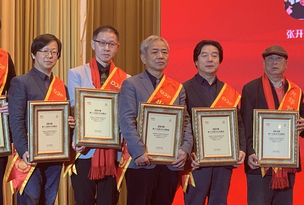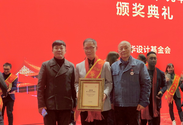 继我校王立端教授去年获得“中国设计贡献奖”银质奖章后,2019年12月12日上午9时在人民大会堂小礼堂举行的第十五届光华龙腾奖颁奖礼上,我校沈福文教授获“中国设计贡献奖金质奖-新中国成立七十周年中国设计70人”提名奖、辛向阳教授荣获“中国设计贡献奖金质奖-新中国成立七十周年中国设计70人”荣誉。这是我校建校近八十年来始终坚持立德树人、坚持内涵建设与特色发展的成果体现。