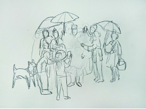 学生围绕“参军”主题创作的线描草图