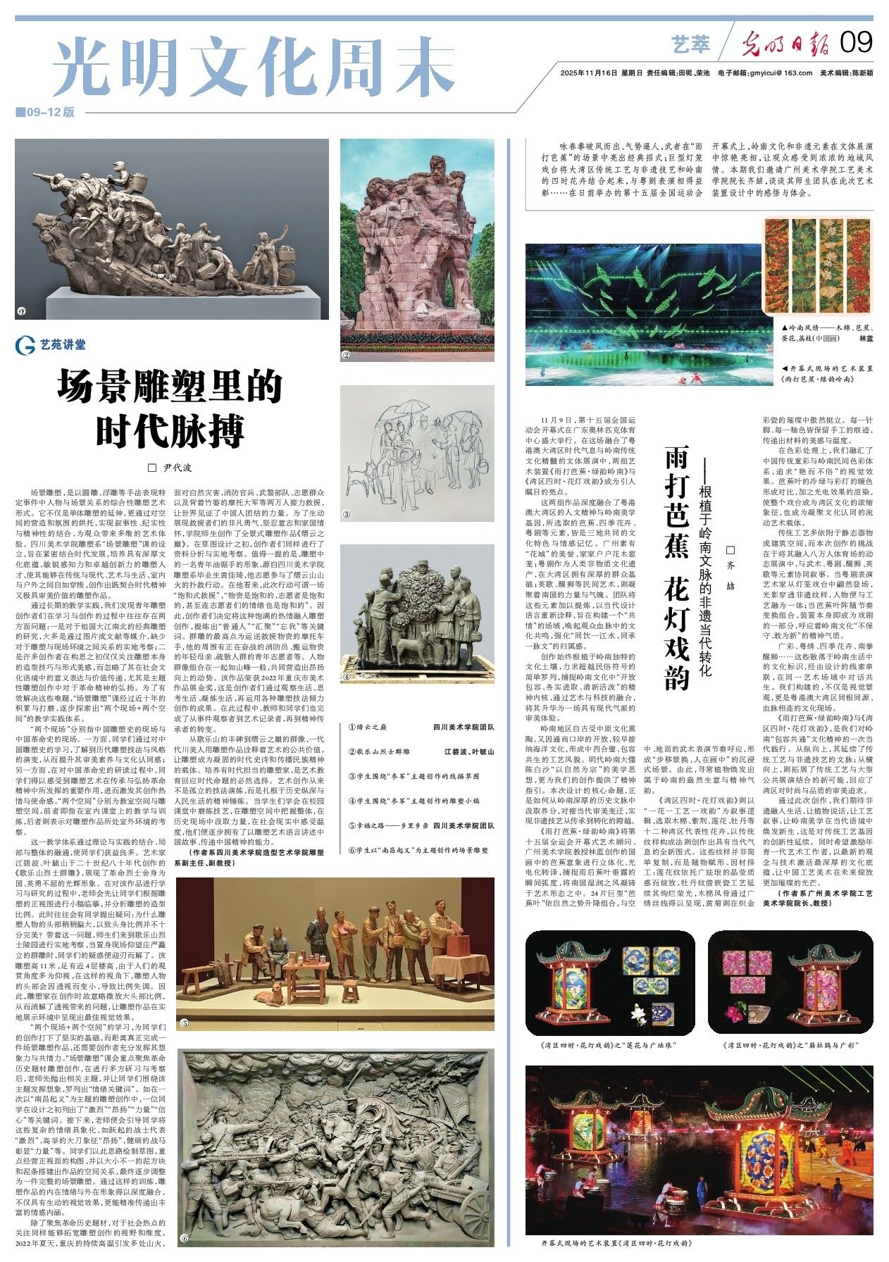 11月16日,《光明日报》(2025年11月16日第09版)刊发我校教师尹代波的署名文章《场景雕塑里的时代脉搏》。