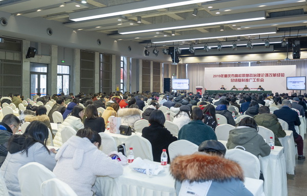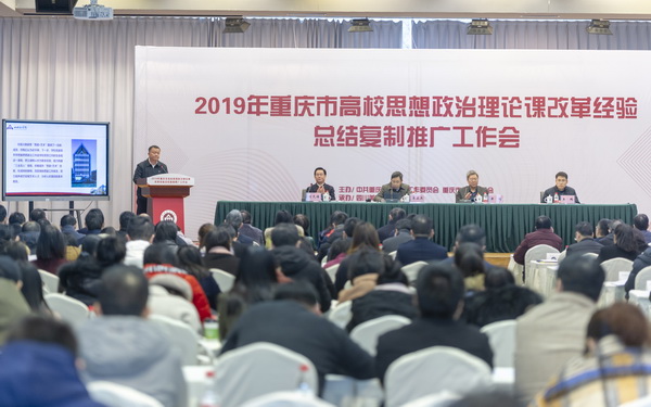 为深入贯彻落实中央学校思想政治理论课教师座谈会精神,贯彻落实市委加强学校思想政治理论课工作座谈会精神,扎实推进新时代高校思想政治理论课创优行动,认真总结提炼可复制可推广的改革经验做法,切实办好高校思想政治理论课,用习近平新时代中国特色社会主义思想铸魂育人。12月27日下午,2019年重庆市高校思想政治理论课改革经验复制推广工作会在我校虎溪校区多功能厅召开。