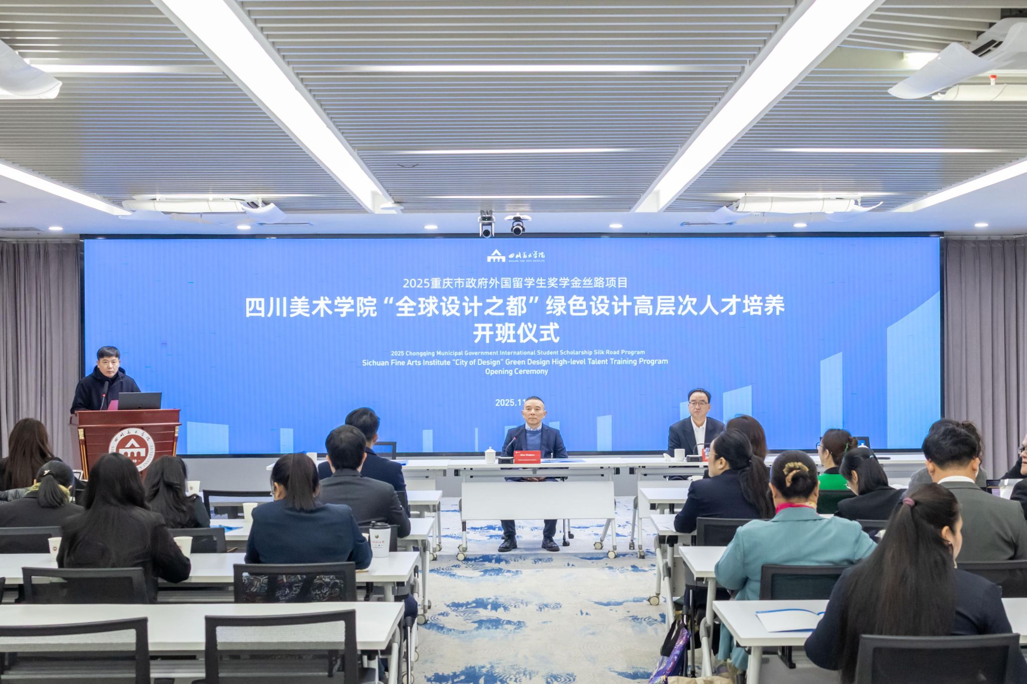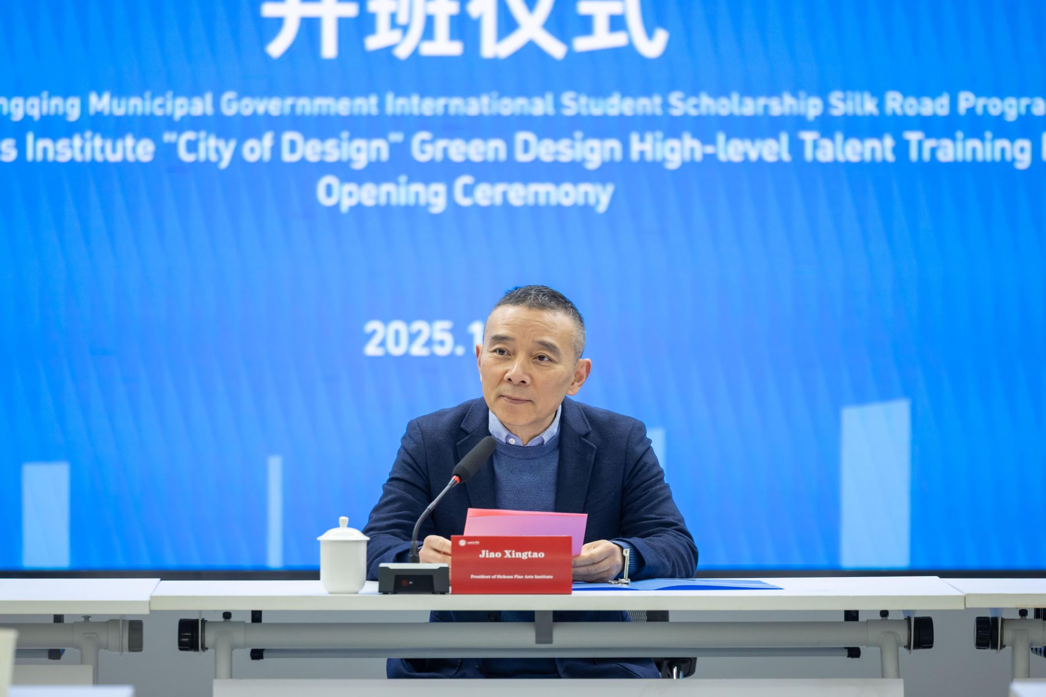 11月24日下午,重庆市政府外国留学生奖学金丝路项目——四川美术学院“全球设计之都”绿色设计高层次人才培养班在我校虎溪校区开班。学校院长焦兴涛,党委常委、副院长段胜峰,重庆市人民政府外事办公室副主任冯子敏出席开班仪式。仪式由段胜峰主持。