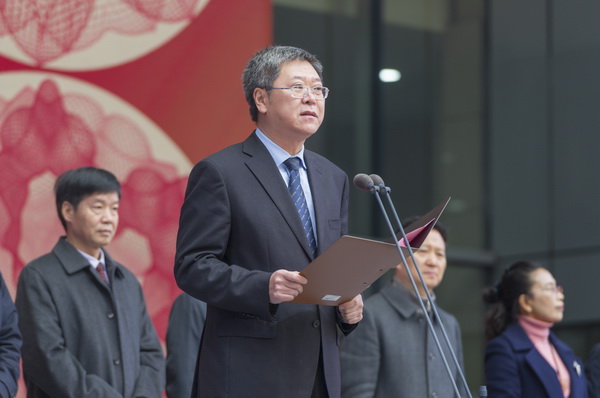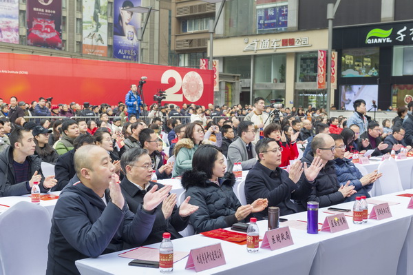 2020年1月3日,2020(第十二届)黄桷坪新年艺术节在九龙坡区杨家坪步行街文化广场盛大开幕。市委宣传部二级巡视员宋晓东、市文化旅游委副主任秦定波、市教委体卫艺处处长程翔宇,四川美术学院党委书记黄政、校长庞茂琨、纪委书记黄云,九龙坡区委副书记、区政府区长刘小强,九龙坡区人大常委会主任胡奇明,九龙坡区委常委、宣传部部长颜朝华,九龙坡区委常委、黄桷坪街道党工委书记罗林泉,九龙坡区人大常委会副主任曾熔,九龙坡区人民政府副区长李洪亮,九龙坡区政协副主席范国明出席了开幕式,我校公共艺术学院党政领导和嘉宾参加了开幕式。开幕式由我校副校长彭林权主持。