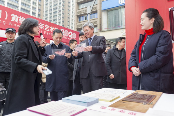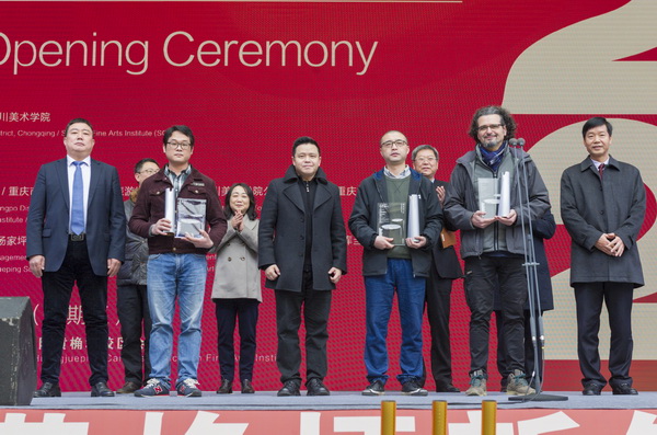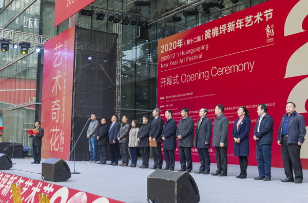 开幕式上,庞茂琨、胡奇明、罗林泉为“首届黄桷坪黄漂艺术家作品大赛”获奖者颁奖。刘小强宣布2020(第十二届)黄桷坪新年艺术节开幕。