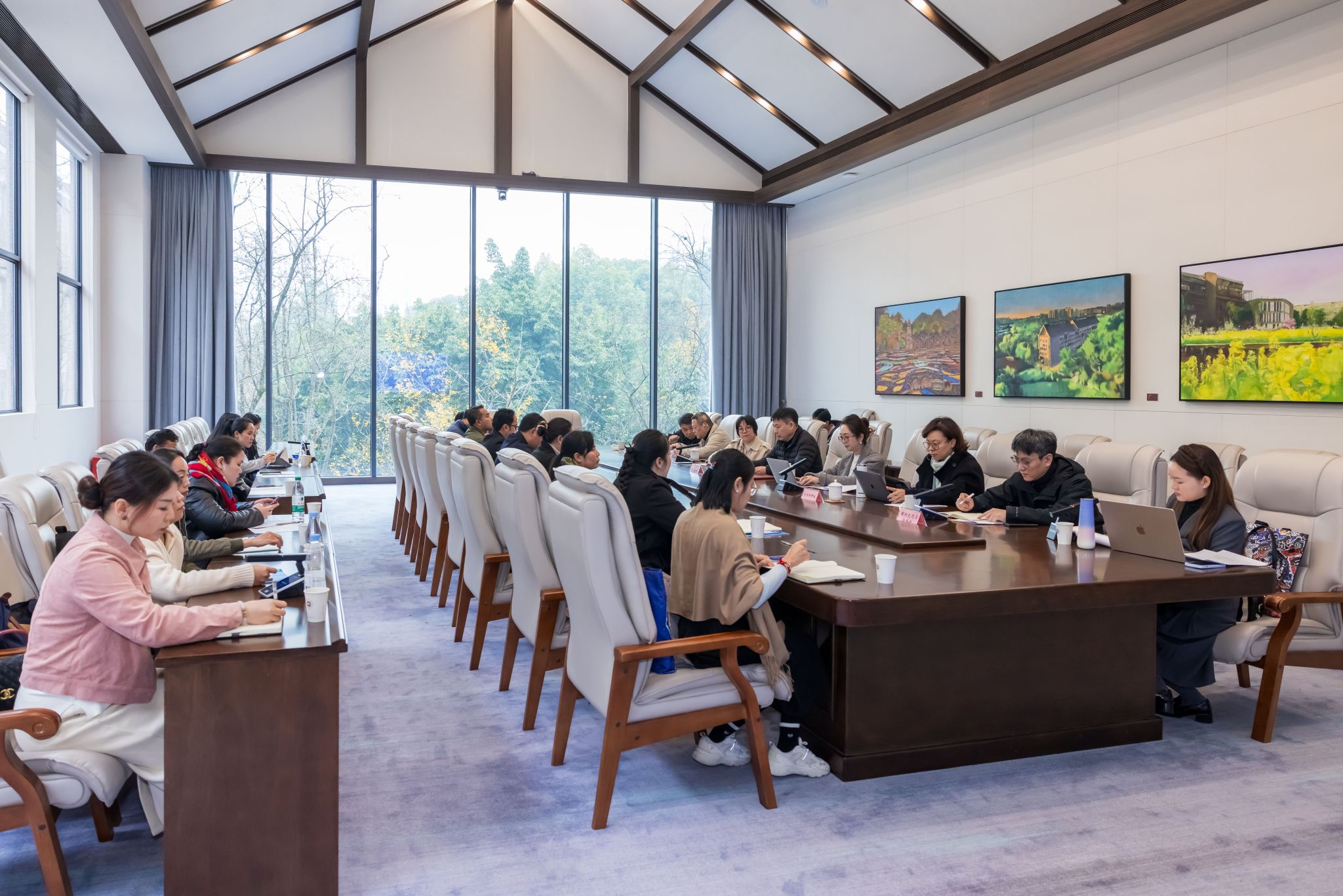 12月17日,四川美术学院“全球设计之都”绿色设计高层次人才培养“中老”合作交流座谈会举办,学校党委常委、副院长段胜峰出席会议。老挝财政部、工贸部、公共工程与交通运输部、农业环境部及老挝国立大学等培训班学员,以及我校国际交流与合作处、创作科研处、造型艺术学院、设计学院、建筑与环境艺术学院相关负责人参会。