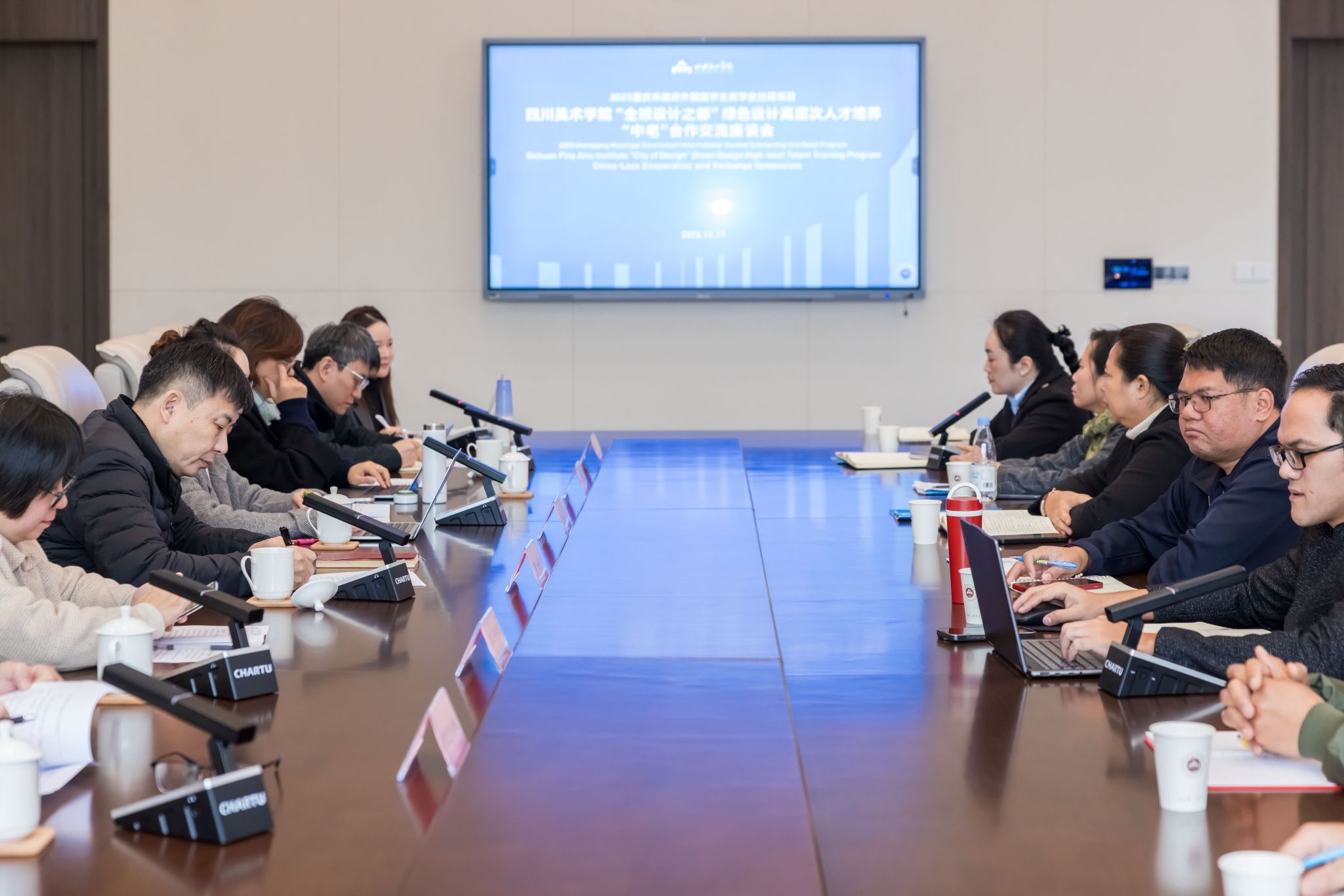 本次会议深化了2025重庆市政府外国留学生奖学金项目合作,为中老绿色设计与人才培养交流搭建了桥梁。