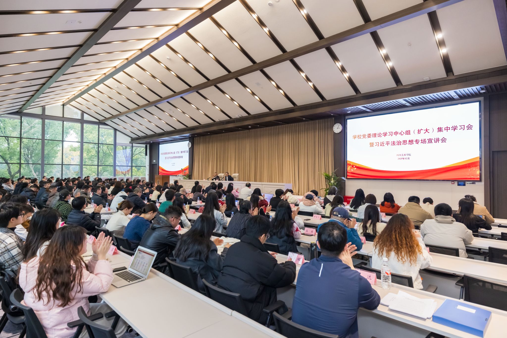 本次宣讲以“深学笃用习近平法治思想”为题,林维教授用开阔的视野、丰富的内容围绕习近平法治思想的重大意义、习近平法治思想的确立发展、习近平法治思想的核心要义、习近平法治思想的科学方法四个方面作了一场生动鲜活、深入浅出的专题宣讲。报告既深刻阐释了习近平法治思想的核心要义和实践要求,又有旁征博引的实证分析,对指导帮助学校广大党员干部、师生深入领会把握全面依法治国的总目标,进一步树牢法治意识,增强法治观念,具有很强的指导意义。