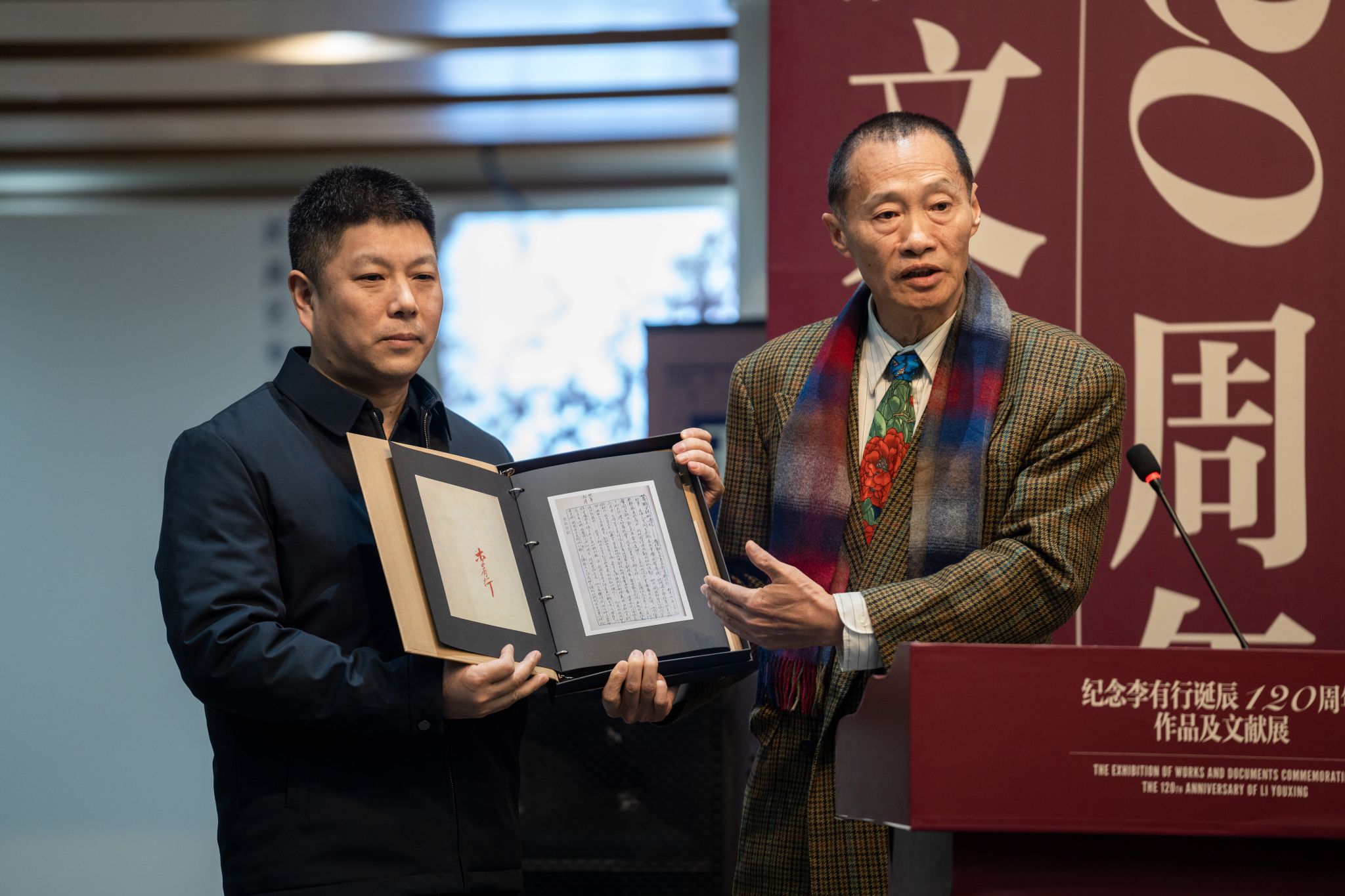 学校党委书记唐青阳、院长焦兴涛,四川音乐学院党委书记杜伟,四川音乐学院党委常委、副院长牟文虎,四川美术学院原副院长、四川音乐学院原美术学院院长马一平,学校党委副书记肖应红、副院长韦嘉,梓潼县委常委、宣传部部长、副县长胥兴荣出席活动,李有行先生亲属代表一同参加活动。