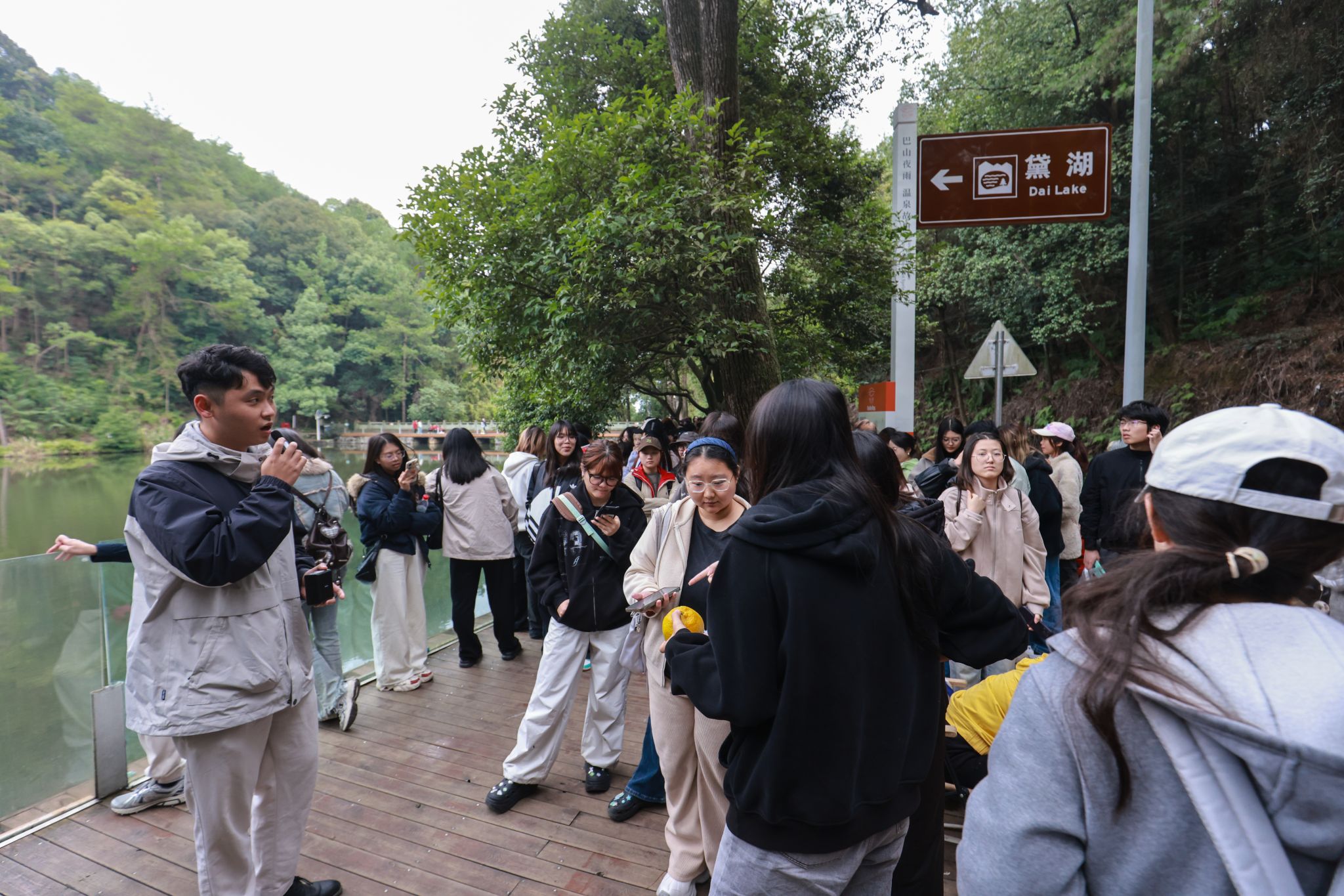 生态赋能,见证绿色转型,领悟习近平生态文明思想。10月下旬至11月上旬,师生团队走进北碚区黛湖生态修复项目现场与金刚碑文旅融合街区,实地感受“两山”理论的重庆实践。在黛湖,昔日违建密集区通过生态搬迁、湿地治理蜕变为山水相映的生态示范点,让学生直观感受到生态保护的实践成效;在拥有300余年历史的金刚碑街区,传统建筑与现代文创有机融合,生动诠释了“生态涵养与文化复兴共生”的发展理念。北碚区委党校教师的理论导入与现场讲解形成合力,推动习近平生态文明思想入脑入心。