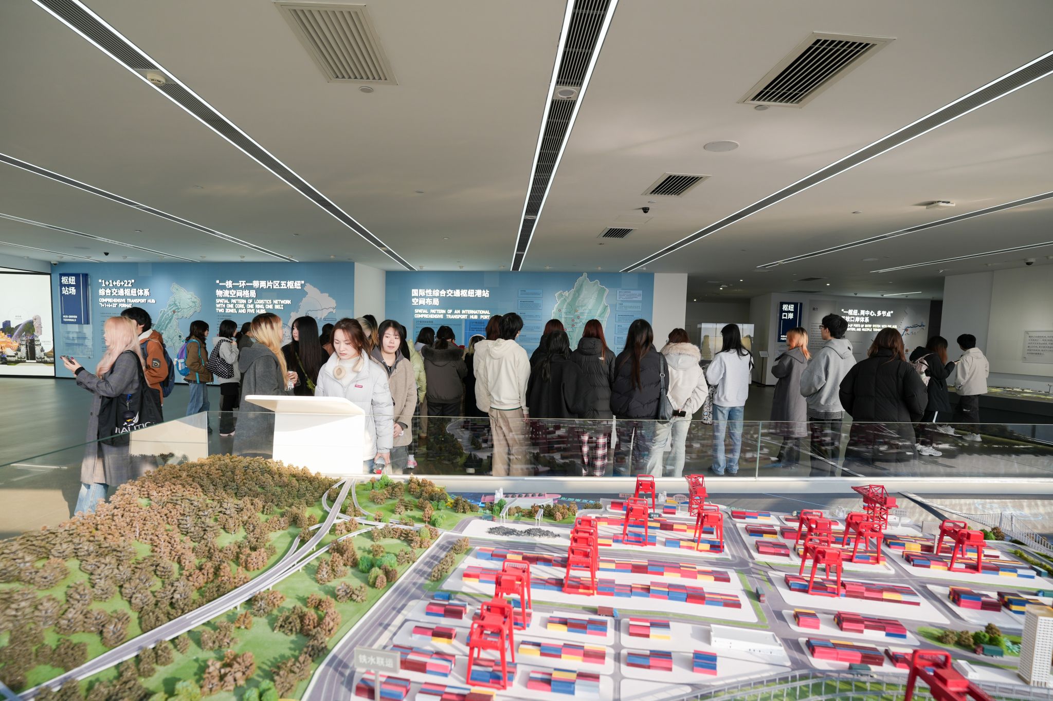 开放引领,拓宽全球视野,领会习近平外交思想。12月5日,重庆国际物流枢纽园区内,师生们通过参观内陆国际物流枢纽展示中心、俄罗斯国家馆,观看《穿越丝路》4D电影,直观感受西部陆海新通道建设的丰硕成果。作为中欧班列(渝新欧)始发地,园区“四向齐发”的国际通道格局、600家物流企业集聚的产业规模、3013.3亿元的年进出口总额,让“陆海内外联动、东西双向互济”的对外开放格局清晰可见。沙坪坝区委党校与学校教师的联合授课,帮助学生将习近平外交思想与内陆高水平对外开放实践深度衔接。