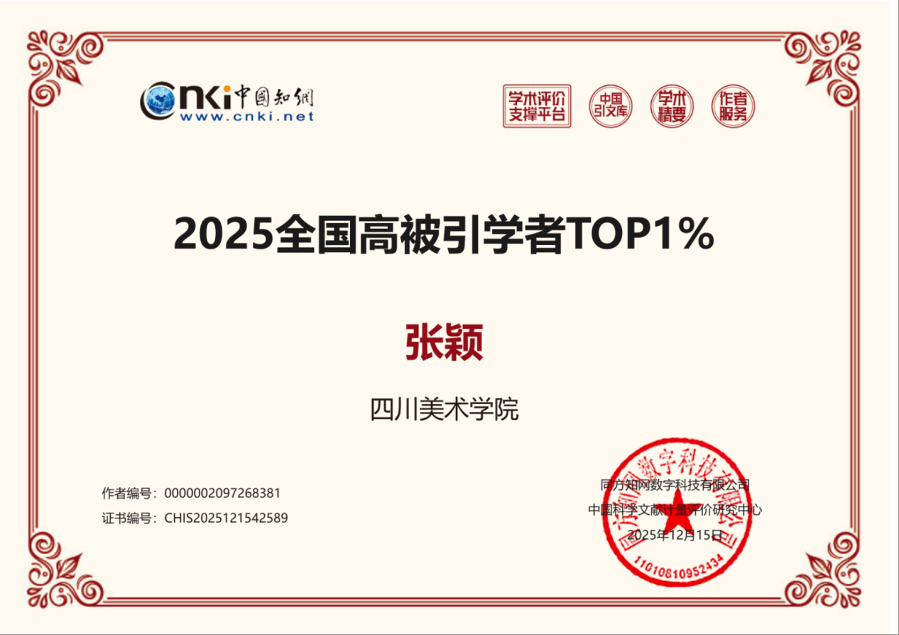 近日,中国知网下属的中国科学文献计量评价研究中心公布“2025全国高被引学者”名单,我校创作科研处张颖、艺术教育学院樊亚峤、设计学院钟芳三名教师入选高被引学者Top1%名单,涵盖社会学、教育学与设计学科,其中张颖、樊亚峤两名教师已连续两年(2024、2025年)入选该榜单。