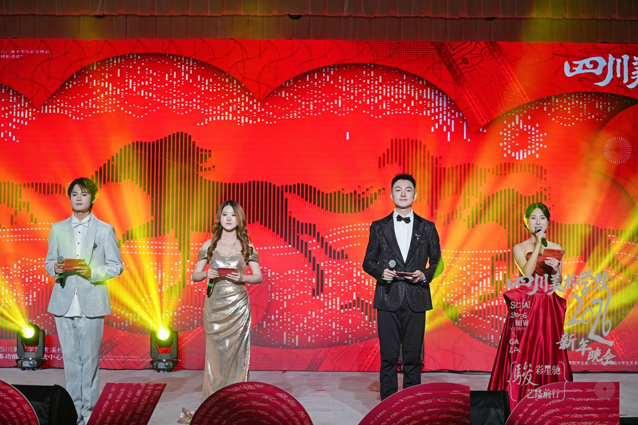 岁序常易,华章日新。在新年的钟声敲响之际,四川美术学院“骏彩星驰 艺路前行”新年晚会12月29日晚在虎溪校区精彩上演。晚会前,学校党委书记唐青阳、院长焦兴涛和其他班子成员通过视频向全校干部师生送上新年祝福。院长焦兴涛,党委副书记肖应红,党委常委、纪委书记黄云,党委常委、副院长张勇华和500余名师生一道观看了演出。大家欢聚一堂,共襄盛会,共贺新岁!