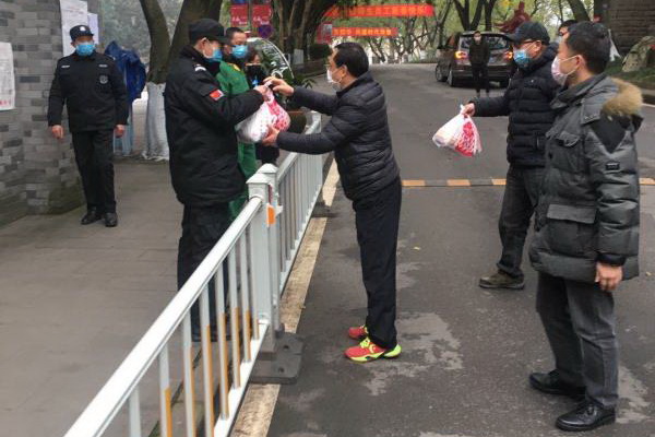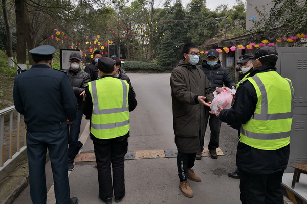 (图2:慰问大学城校区虎溪公社侧门值班人员)