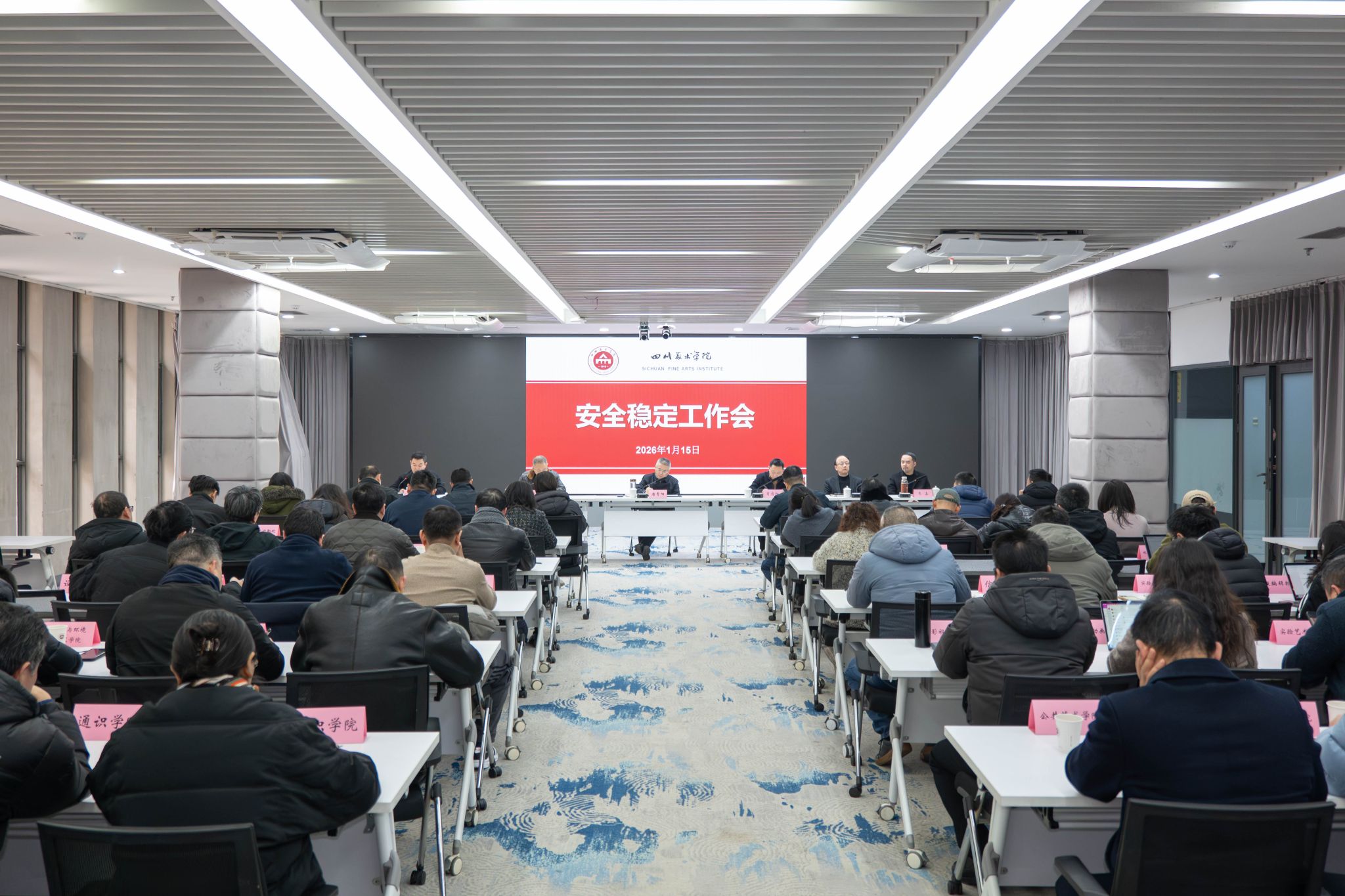 1月15日下午,学校在虎溪校区行政楼五会议室召开寒假前安全稳定工作会,学校党委书记唐青阳出席会议并讲话,党委副书记肖应红,党委常委、纪委书记黄云,党委常委、副院长张勇华,副院长韦嘉出席会议。各部门负责人、二级学院党政负责人参加会议,会议由党委常委、副院长王朝刚主持。