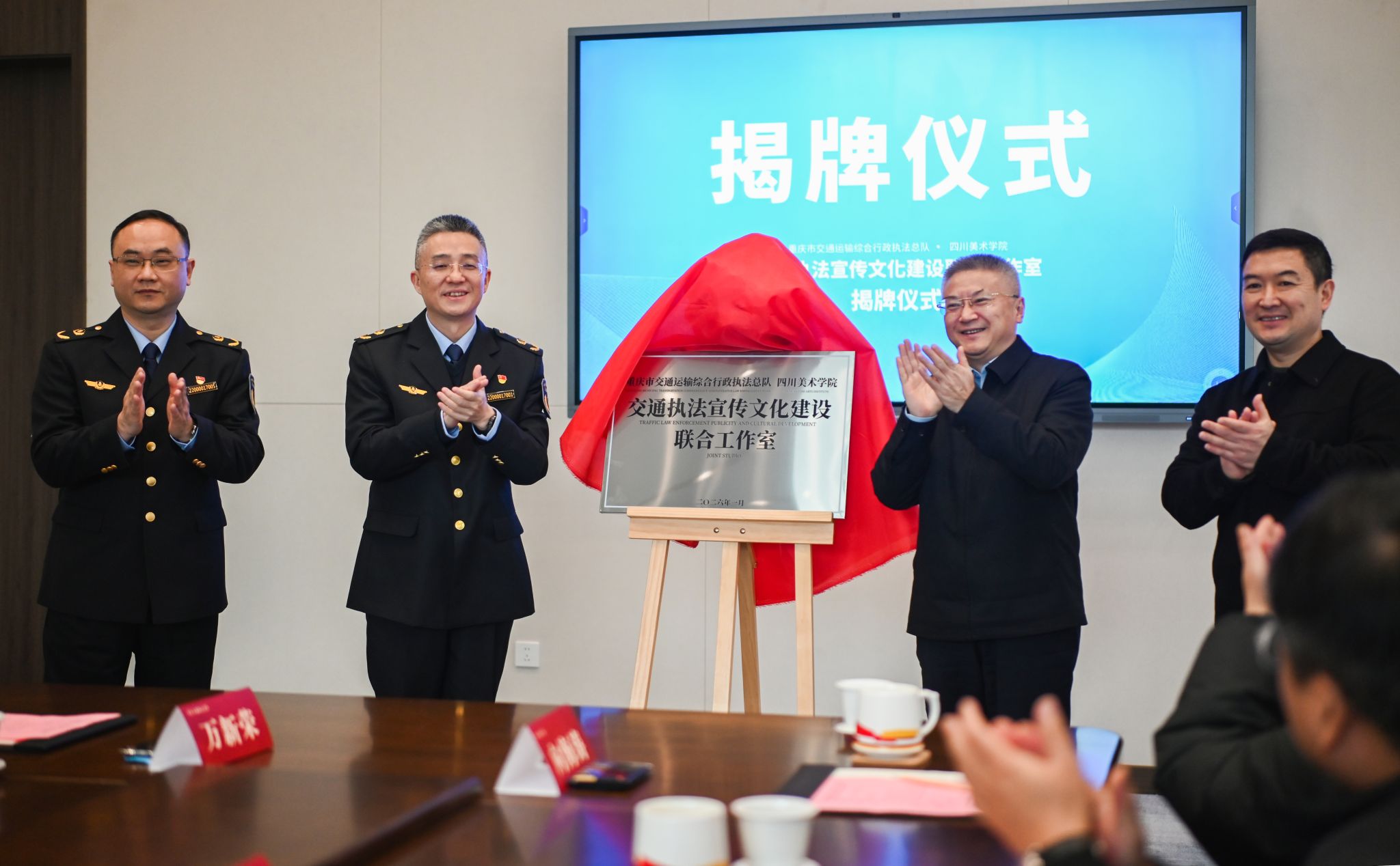 1月16日下午,四川美术学院与重庆交通运输综合执法总队交通执法宣传文化建设联合工作室在学校虎溪校区揭牌成立,这也是重庆交通运输执法领域与高校共建的首个宣传工作室。