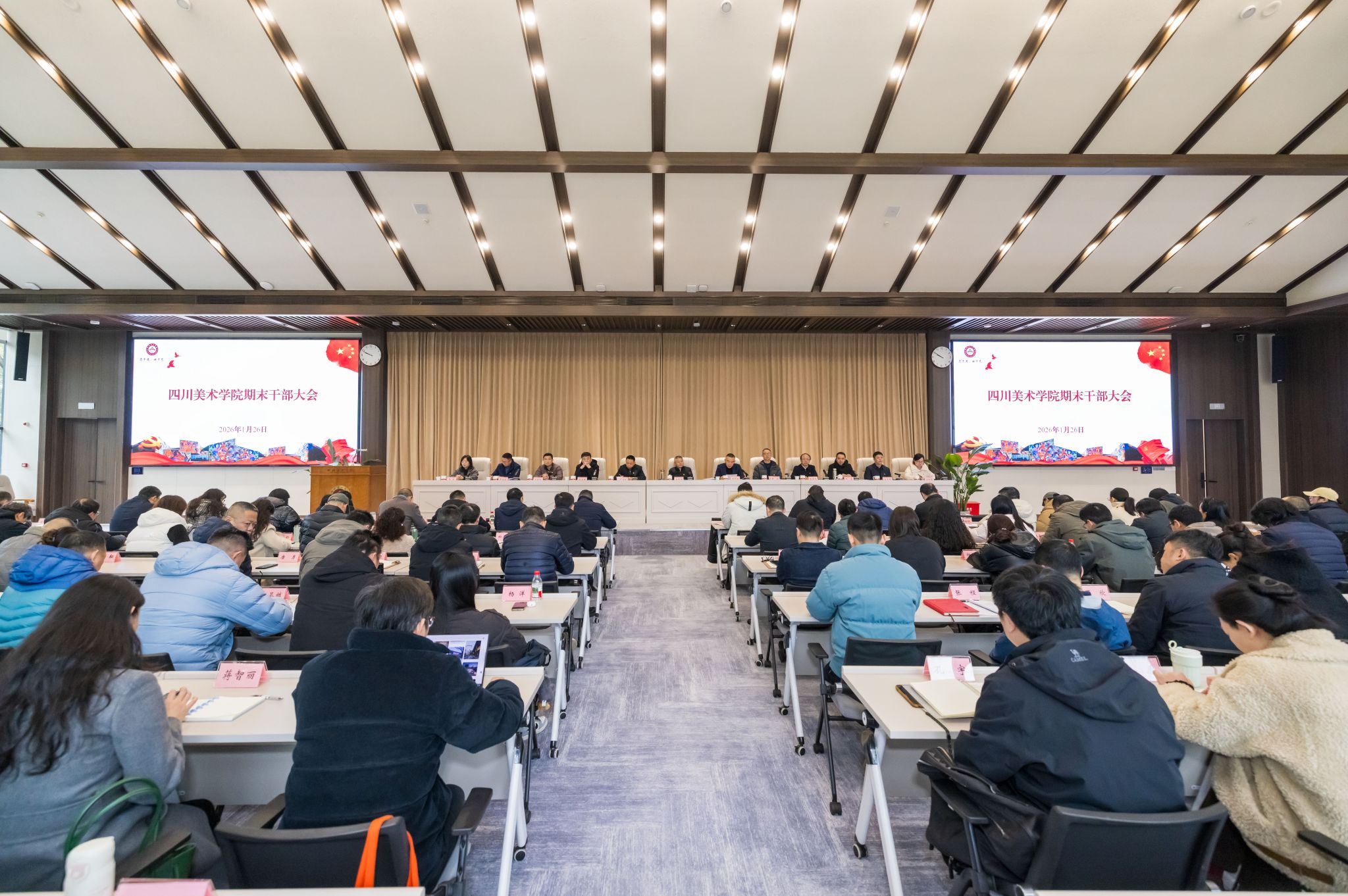 1月26日上午,学校在虎溪校区多功能学术交流中心3号厅召开秋季学期期末干部大会。党委书记唐青阳主持会议,院长焦兴涛讲话,全体校领导出席。学校科级以上领导干部参加会议。