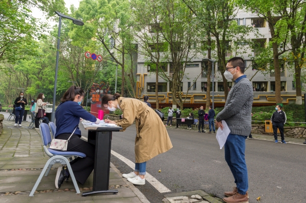 演练由四个部分组成,模拟了开学后的各种场景,包括:从南门的学生返校报到到绘画楼的进教室检测体温,从发现异常学生到学生入住隔离房,从排队选餐到食堂用餐,等等。在返校报到演练中,各二级学院辅导员认真做好报到准备,严格检验学生身份证和承诺书,细心发放疫情期间学生管理规定。在进教室测体温演练中,任课教师和测温志愿者密切配合,登记正常,报告异常,做到有条不紊。面对突发情况,教师冷静处理,一方面安抚学生情绪做好思想工作,一方面快速反应,及时报告。从向防控办报告到学生坐上医院专用车辆,仅仅用了8分钟时间。在收到有学生要进入隔离房的消息后,海吉亚医院、医务室、保卫处、物业迅速集结,尽量减少人员接触,有效有序地将学生送进了隔离房。在食堂用餐演练中,从排队到测温,从二楼到一楼,从选餐到用餐,环环相扣,最大限度地节约了时间。