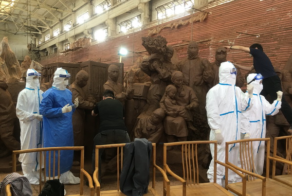 大型群雕《冬去春来》创作历时一月有余,现已经进入最后刻画阶段。为进一步完善作品,四川美术学院与重庆医科大学共同组织策划创作看稿会和媒体见面会,邀请了支援湖北抗疫一线医务工作者参与创作,现场为雕塑定形刻画提出宝贵意见,将抗疫精神与主题创作结合,用心用情雕塑抗疫丰碑。
