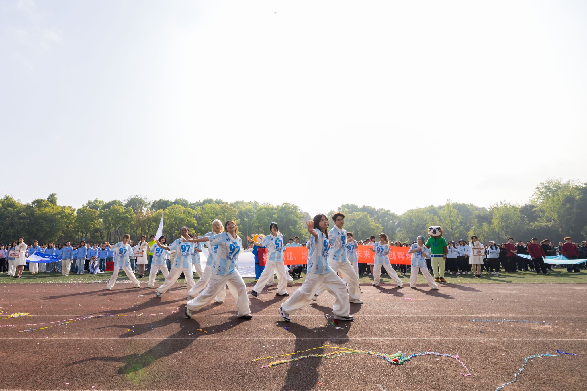 入场式中,国旗队、花环队、彩旗队、裁判员及各师生代表方阵依次入场,步伐铿锵、神采飞扬,尽显川美师生昂扬向上的精神风貌。各方阵独具匠心的表演,巧妙地将绘画作品、卡通人物、传统书法等元素融入节目。让艺术与体育、创意与传统激情碰撞,为观众带来了一场别开生面的视觉盛宴。