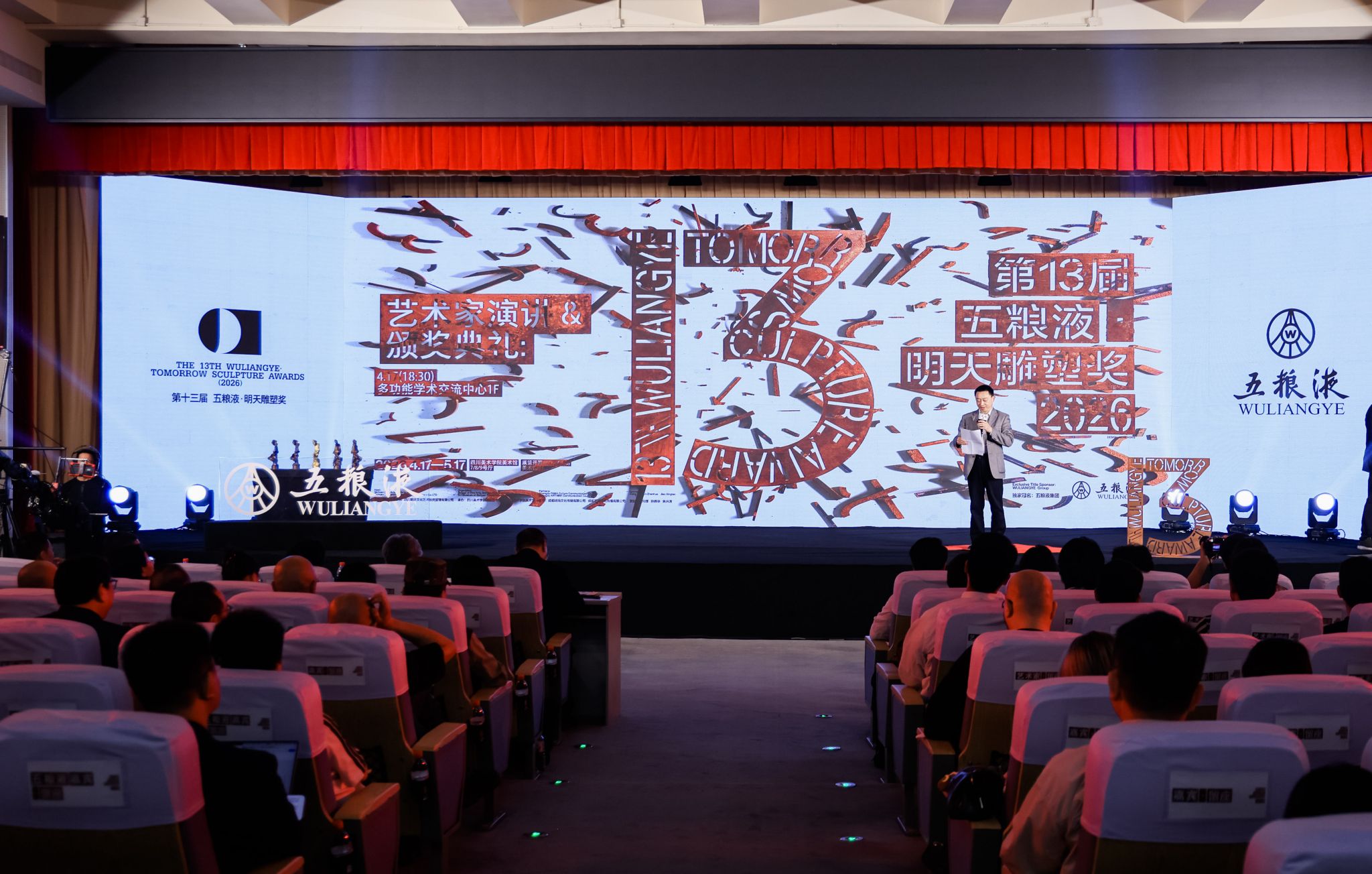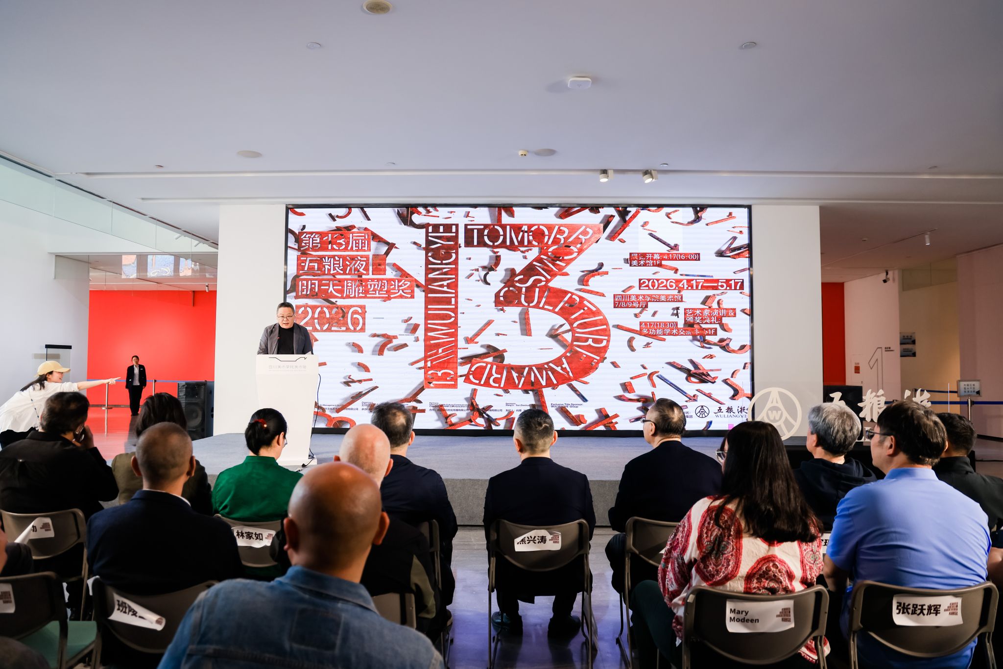 4月17日,2026第十三届五粮液“明天雕塑奖”入围暨获奖作品展在四川美术学院美术馆开幕,焦兴涛院长在开幕式致辞并宣布展览开幕。广州美术学院院长范勃代表终评评委致辞,清华大学美术学院长聘教授董书兵代表初评评委致辞并宣布入围艺术家名单。