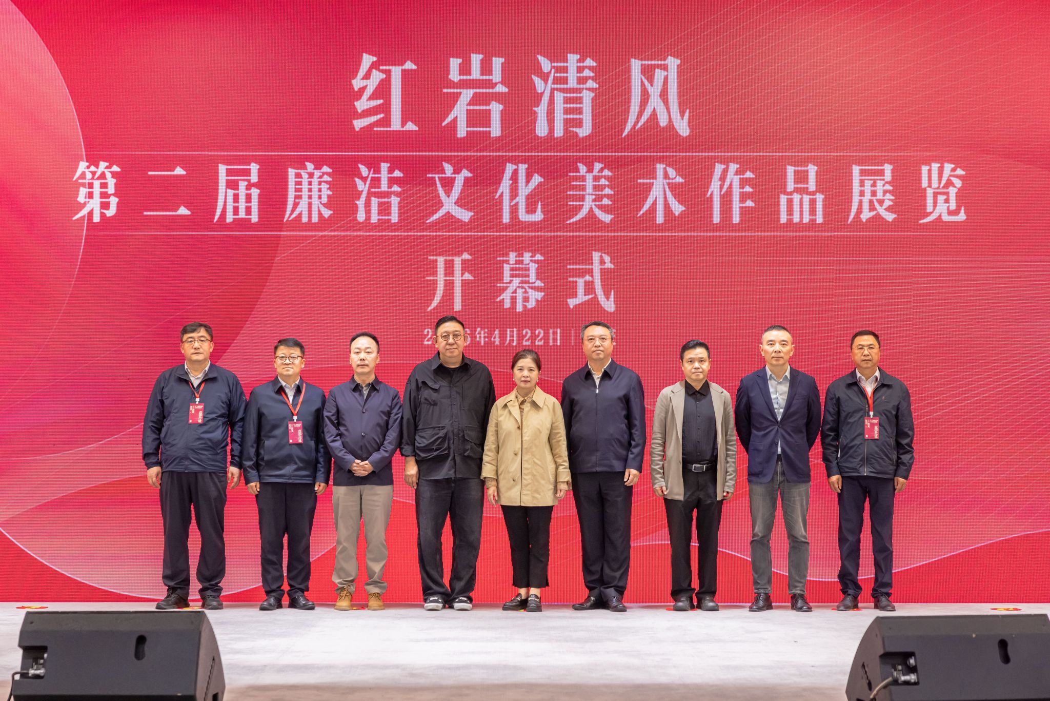 聂红焰、骆勇、杜松儒、庞茂琨、秦后彬、焦兴涛、嵇绍岭、韩兵兵、刘军共同为“红岩清风——第二届廉洁文化美术作品展览”揭幕。