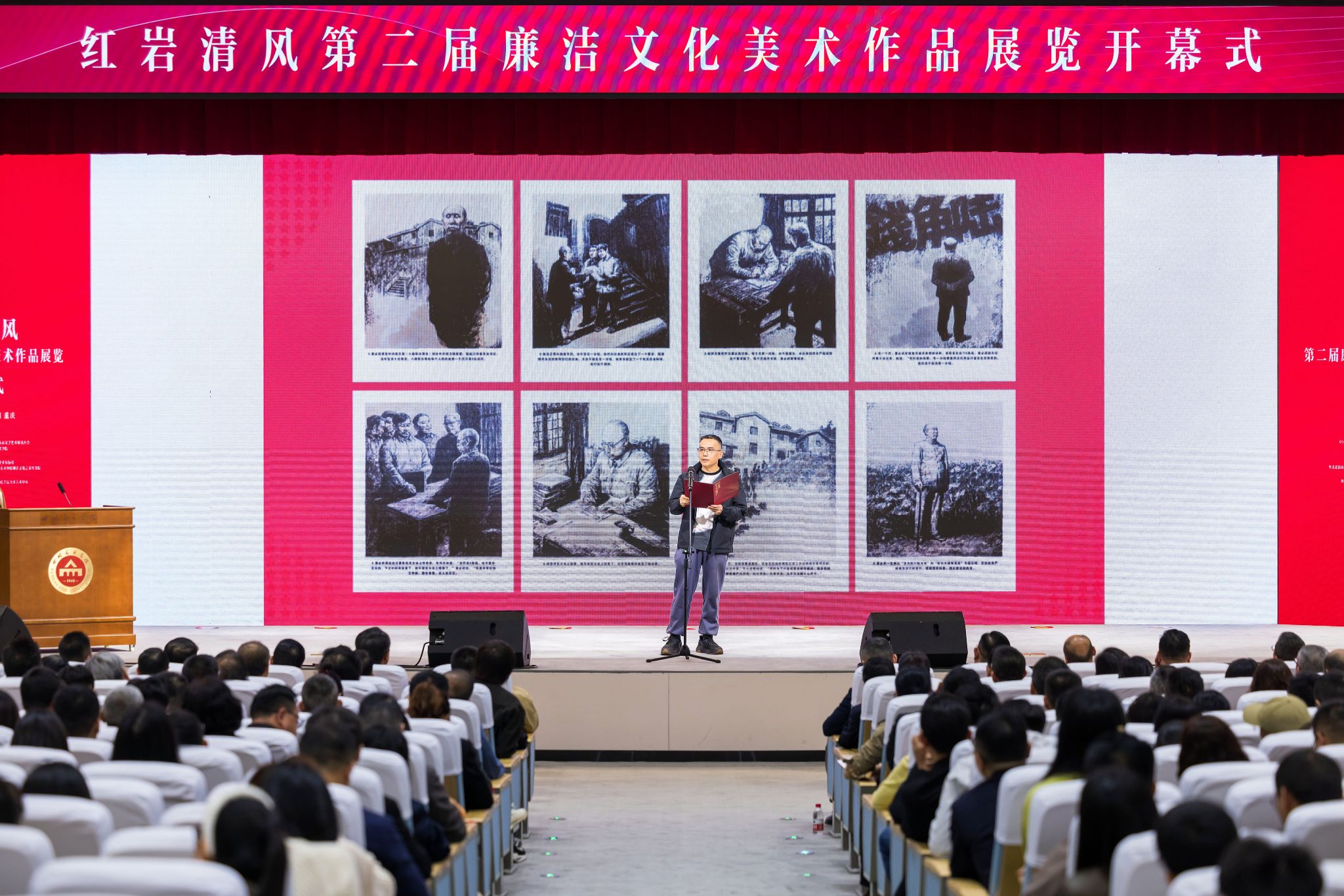 焦兴涛在致辞中指出,重庆是红岩精神的发源地。四川美术学院作为诞生于抗战烽火、扎根于红岩热土的专业美术院校,不仅肩负着培养高素质专业美术人才的重任,更将涵养求真务实、团结奋斗的时代新风作为学校廉洁文化建设的核心目标。近年来,学校围绕新时代廉洁文化建设要求,推动清廉文化建设与艺术育人深度融合,搭建起交流研讨、创作展演的优质平台,不断夯实师生对廉洁理念的内在认同,着力构建新时代廉洁文化建设新格局。希望本次活动能进一步弘扬新时代廉洁文化,持续营造学廉知廉、崇廉尚廉、践廉促廉的良好风尚,引领中国美术事业由高原向高峰迈进,为中国式现代化建设提供强大的精神动力