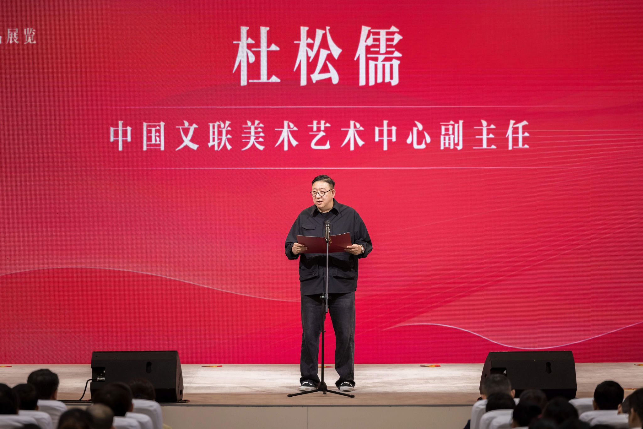 参展艺术家代表刘斌分享了作品创作。他谈到好的廉洁文化美术作品,从来都不是个人情感的简单表达,而是时代精神的生动诠释。以艺术为笔,以廉洁为墨,讲活红色故事、传扬廉洁精神,是全体参展艺术家共同的创作初心。