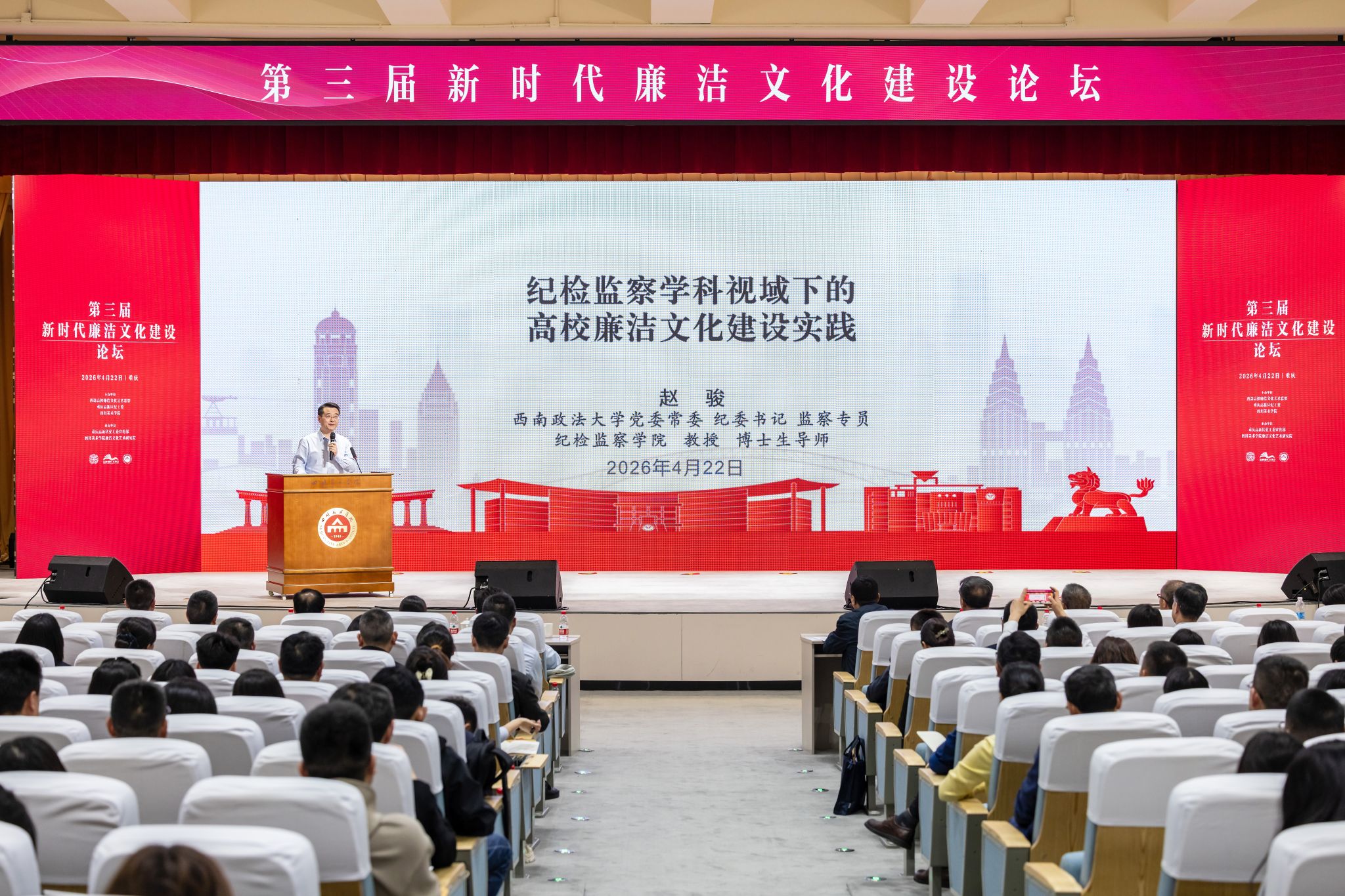 西南政法大学纪委书记、监察专员、纪检监察学博士生导师赵骏作《纪检监察学科专业视域下的高校廉洁文化建设实践》报告。他紧密结合西南政法大学实际工作,探讨了把廉洁元素融入人才培养和办学治校全过程,以廉洁文化建设激发青年学生成长成才、干部职工干事创业,赋能学校事业高质量发展的有益经验。