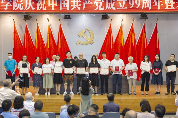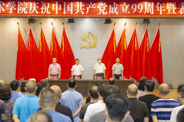 学校党委常委、副校长张杰同志宣读了《中共四川美术委员会关于表彰学校先进基层党组织、优秀共产党员和优秀党务工作者的决定》,授予造型艺术学院党总支等8个基层党组织为“先进基层党组织”称号,授予万玉珊等15名同志为“优秀共产党员”称号,授予王劲等5名同志为“优秀党务工作者”称号,号召各级党组织和广大共产党员积极向先进典型学习,坚定信念、不忘初心、牢记使命、开拓进取。