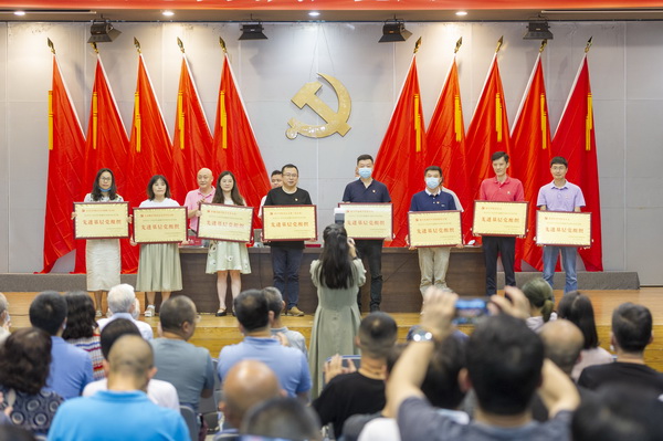 主席台领导为先进基层党组织、优秀共产党员和优秀党务工作者代表颁奖。
