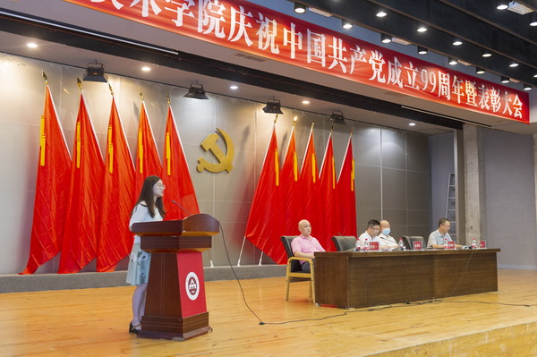 7月1日,学校隆重举行庆祝中国共产党成立99周年暨表彰大会,表彰先进基层党组织、优秀共产党员和优秀党务工作者。学校老领导高智科,学校全体在家校领导庞茂琨、张杰、黄云,全体中层领导干部,全体党支部书记,离退休党员代表,今年新发展的党员,共计150余人参加了大会。会议由学校党委常委、纪委书记黄云同志主持。