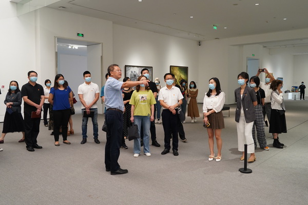 两个党支部的党员同志一起参观了“中国力量——四川美术学院主题创作作品展”“艺术助力城乡建设更美好”等主题创作展览。黄政同志亲自对展品作了深入细致的讲解,阐释了党的创新理论,讴歌了新时代英雄。