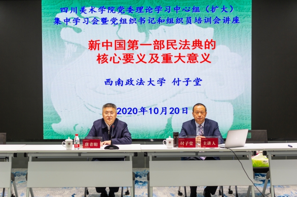 10月20日上午,学校举行党委理论学习中心组扩大集中学习会暨党组织书记和组织员培训会。西南政法大学校长付子堂教授应邀作《中华人民共和国民法典》专场学习辅导报告。学校党政领导唐青阳、庞茂琨、左益、张杰、黄云、焦兴涛出席报告会,报告会由学校党委书记唐青阳主持,学校中层干部、基层党支部书记、二级党组织组织员和全体思政课教师参加了报告会。