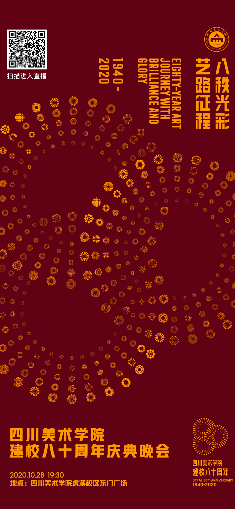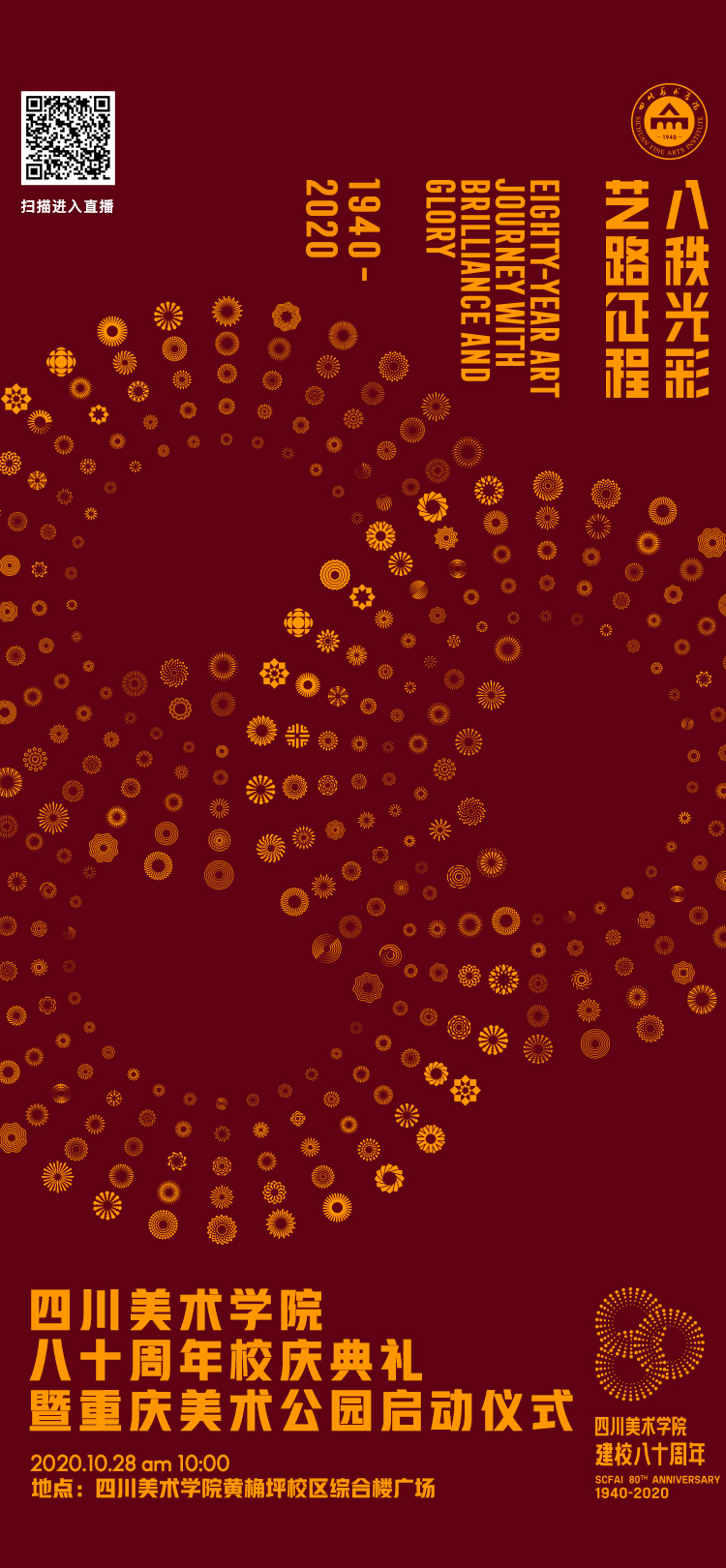 鉴于疫情期间人员聚集管控等相关规定,到现场观礼人数有限。因此,学校委托新华网等平台对以上两项活动进行全程线上直播。欢迎广大师生、校友和社会各界友人与川美共同分享建校80周年的喜悦与荣光!