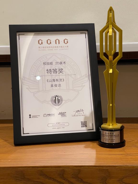 2020年11月21日,GGAC第三届全球游戏动漫美术概念大赛(Global Game Art Contest)颁奖典礼在中国上海正式落下帷幕。我校影视动画学院互动媒体专业共9位同学获得比赛晋级资格。其中,2017级学生吴俊达一举获得本届大赛的2D美术特等奖,奖金18万元。