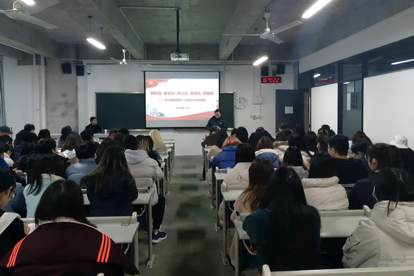 12月11日下午,学校党委副书记、校长庞茂琨教授为艺术人文学院师生做了一场题为《新阶段、新目标、新任务、新格局、新要求——学习贯彻党的十九届五中全会精神》的宣讲报告会。会议由艺术人文学院党总支书记陈德洪主持。学院全体党员、教师代表,全体学生会干部、班干部和学生代表近100人参加。