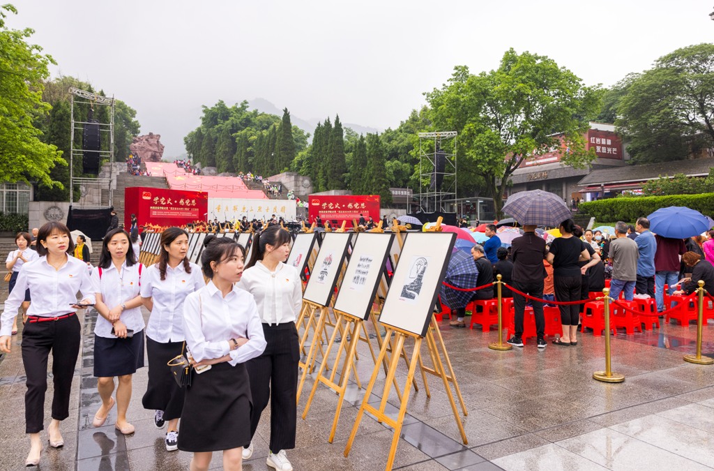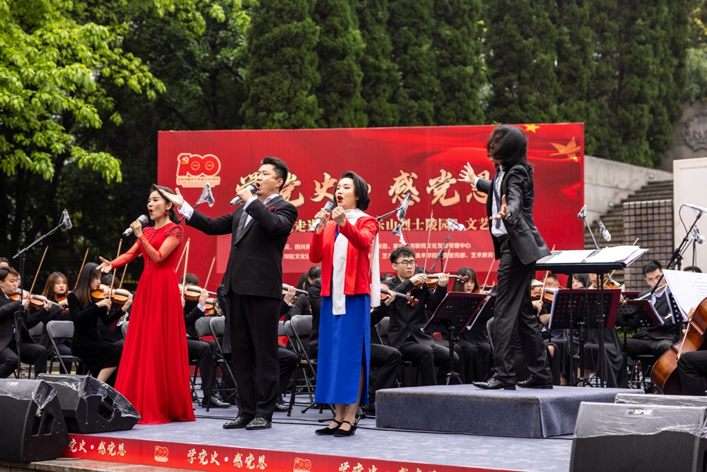 文艺展演在红岩魂广场热烈举行。在四川音乐学院青年交响乐团伴奏下,成渝两地青年艺术家联袂登台,为广场上的市民和参观的游客奉献了一场精彩纷呈的主题文艺演出,用音乐向革命先烈致以崇高的敬意,表达了艺术家深沉的爱党爱国情怀。与此同时,我校艺术家带来的“学党史、悟思想——习近平新时代中国特色社会主义思想版画创作展”也在红岩魂广场向观众开放,展览展出了造型艺术学院师生以习近平新时代中国特色社会主义思想为主题创作的百余幅版画作品。四川音乐学院的文艺演出和我校的美术展览,充分发挥了两校各自的专业优势,相映生辉,相得益彰,给广大群众带来了一场“有声有色”的艺术盛宴,为人民群众的高品质生活增色添彩。