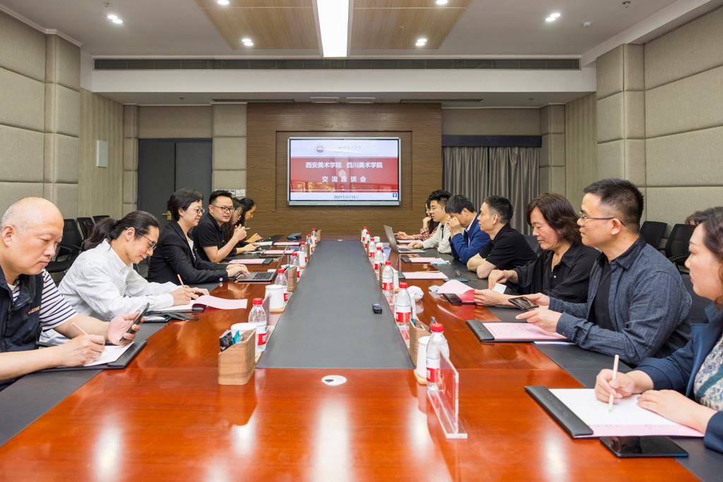 交流会围绕调研主题,从一流专业建设面临的问题出发,双方各抒己见,展开了热烈的探讨。我校艺术教育学院院长谢亚平详细介绍了艺术教育学院的发展历程、专业设置,以及艺术教育一流专业建设成果和发展思路。西安美院屈健副院长认为,川美艺术教育专业建设取得的成绩、“艺术+教育”跨界融合的办学理念、一师一课精准服务、创造力核心素养和专业技能培养并进、美育链接社会等独具专业美院特色的办法、思路,对于西安美术学院的专业建设具有很强的可借鉴性,高度赞扬了川美教师境界高,积极主动地思考和工作,为学科建设无私贡献成果,期望两校之间多联系,更好地为国家、为社会、为人民办好艺术教育一流专业。