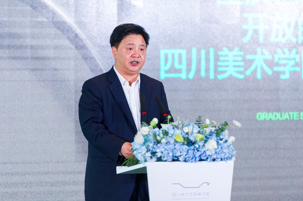 重庆市教委副主任温涛发表讲话。他指出,四川美术学院作为一所在重庆高等教育版图中独具特色的学校,始终以“出作品、出人才”为重庆建设西部地区教育高地增光添彩。特别是四川美术学院已经持续举办了十七年的“开放的六月”艺术游活动,切实丰富了市民文化生活,推动了重庆城市文化建设,成为重庆人民的盛事,成为重庆教育界的骄傲。他提出,艺术教育在社会主义文化发展和建设高质量教育体系的进程中发挥着至关重要的作用,四川美术学院作为重庆市艺术教育的排头兵,要勇担培育艺术英才、强化艺术研究、开放艺术资源、普及审美教育、促进文化交流的重任,力争早日建成国内一流、国际知名的高水平美术学院。