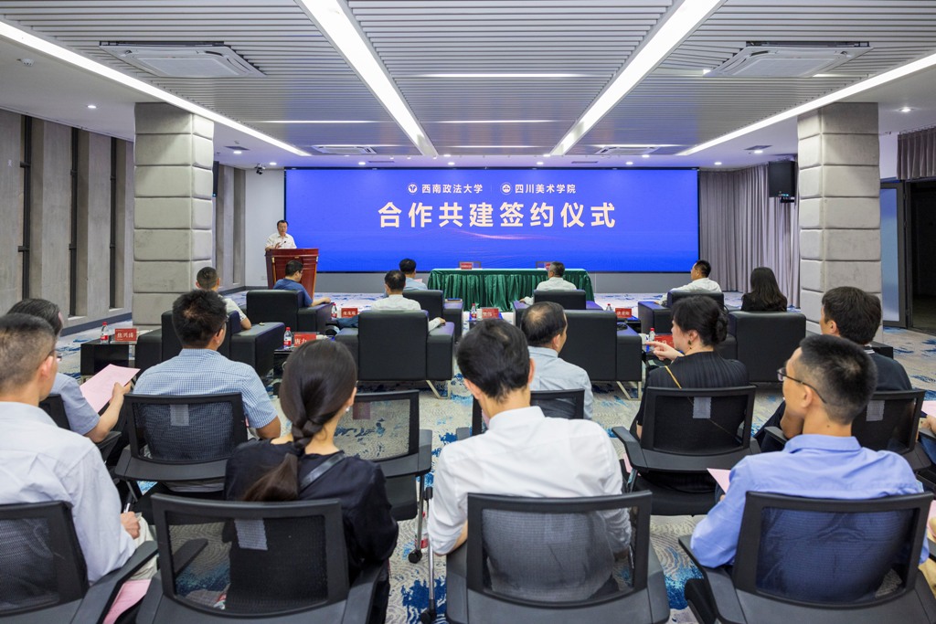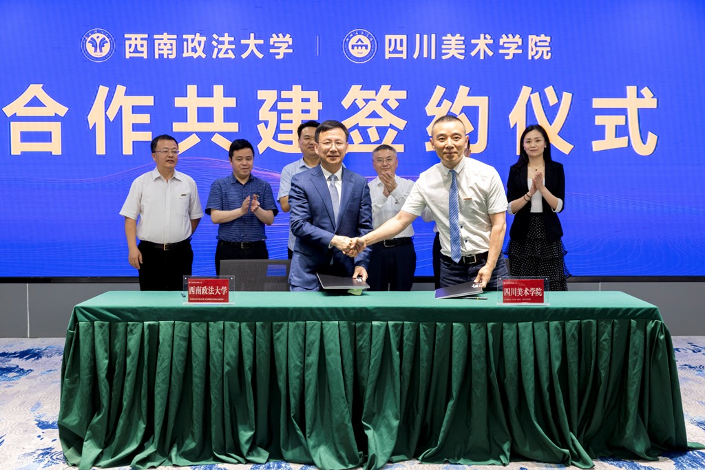 6月20日,西南政法大学-四川美术学院合作框架协议签约仪式在四川美术学院虎溪校区举行。四川美术学院党委书记唐青阳、西南政法大学党委书记樊伟先后致辞。四川美术学院院长庞茂琨宣读两校合作共建牵头建设二级单位名单。四川美术学院党委副书记左益主持签约仪式。四川美术学院副院长焦兴涛、西南政法大学党委常委、副校长唐力共同签署两校合作框架协议。西南政法大学党委副书记吴钰鸿,党委常委、副校长唐力,党委常委、研究生院院长李燕,四川美术学院党委常委、党委宣传部部长贾安东,党委研究生工作部部长、研究生处处长、学科学位办主任韦芳,以及双方合作共建牵头建设二级单位的领导参加了签约仪式。